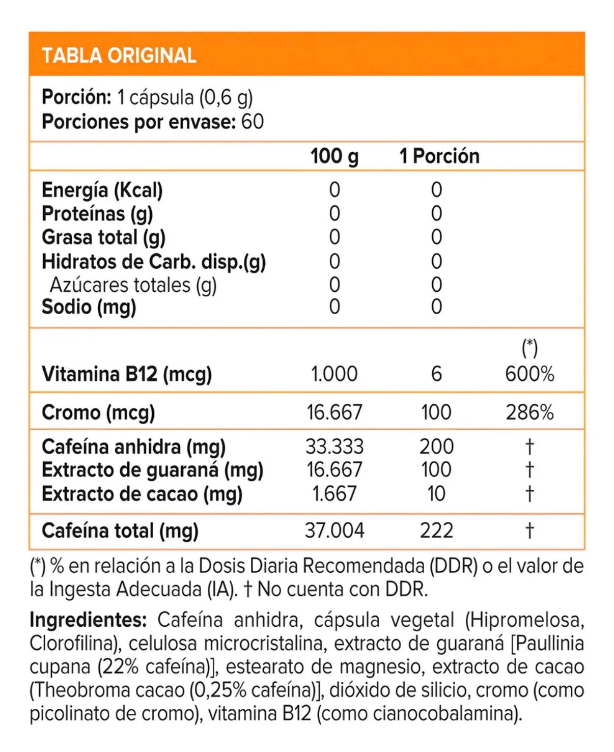 - No combinar con otras fuentes de cafeína o estimulantes